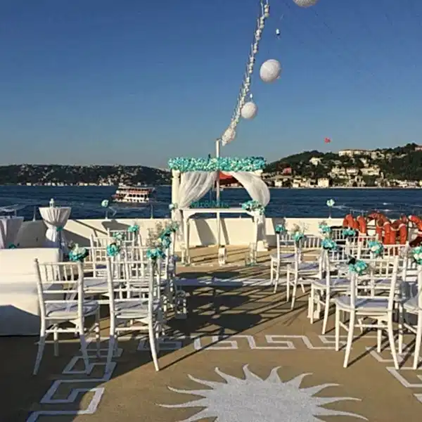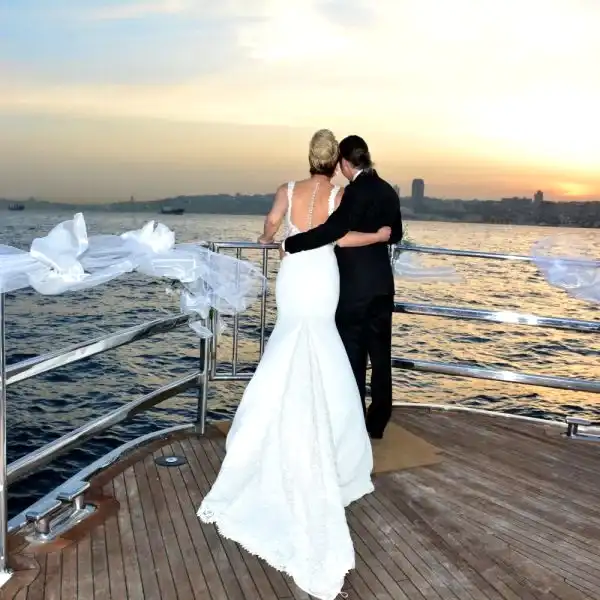 As yacht-owners ourselves, we are intimately familiar with the needs of guests, logistics and practicalities. After years of working with many different yachts for weddings in Istanbul, we have since narrowed it down to a select-few luxury charter yachts that we feel can offer a reliable and professional service expected for a wedding. These carefully-selected and well-cared for luxury boats offer comfort, modern facilities and an attentive service for our valued guests. Additionally for your peace of mind, we can facilitate a viewing of your selected wedding boat prior to booking for those who wish. So you can rest assured that by booking with us, you will be getting one of the best possible boats in the city for a smooth event as well as one of the most beautiful wedding venues in Turkey.