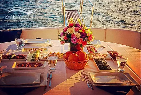 - Dinner Menus are specially catered exclusively for Zoe Yacht providing freshly cooked fish and selected seafood, meat and vegetable varieties, provided by well-established and reputable Bosphorus restaurants (according to the time and location of your cruise).